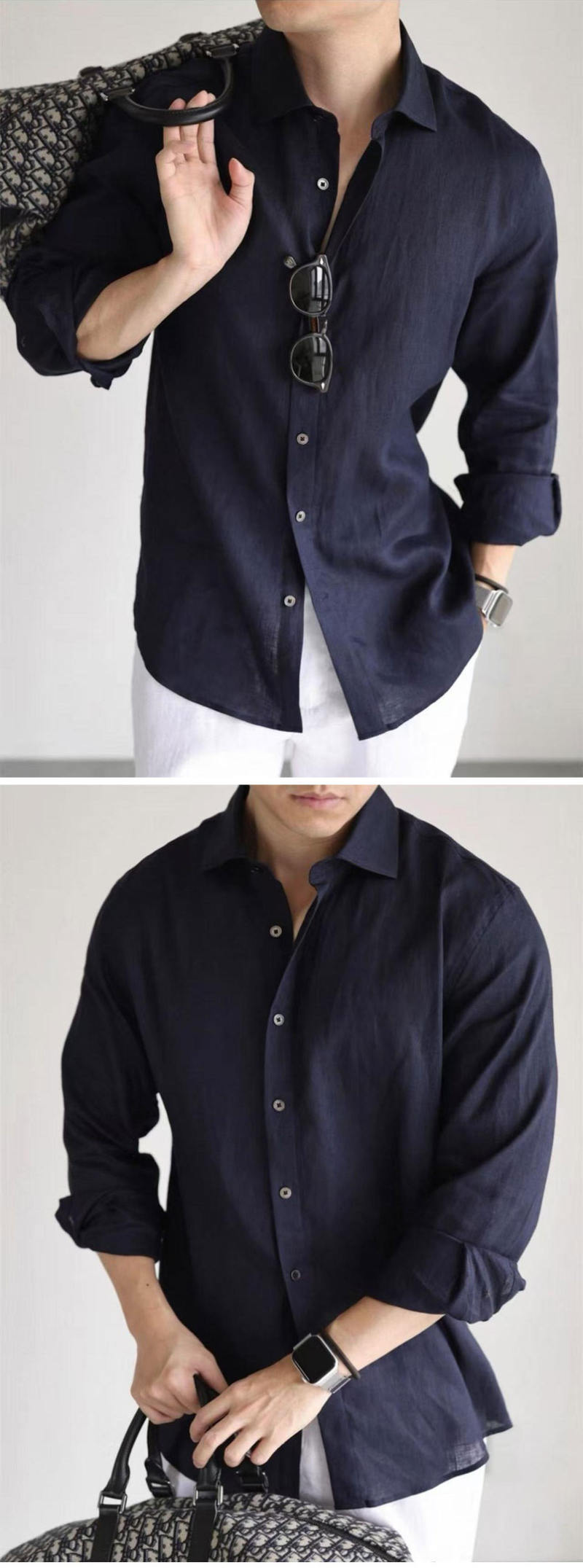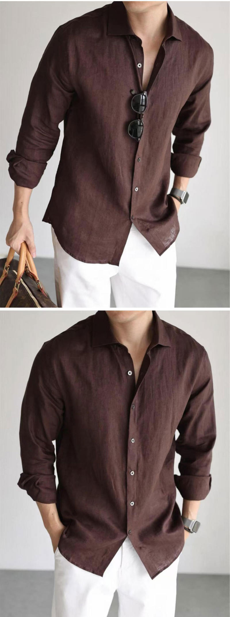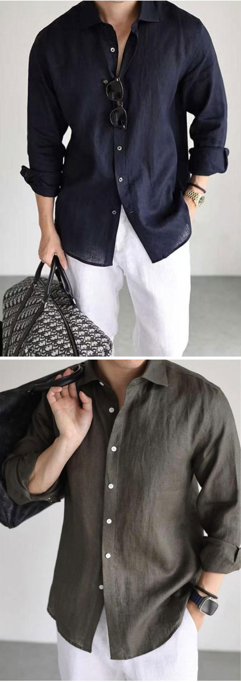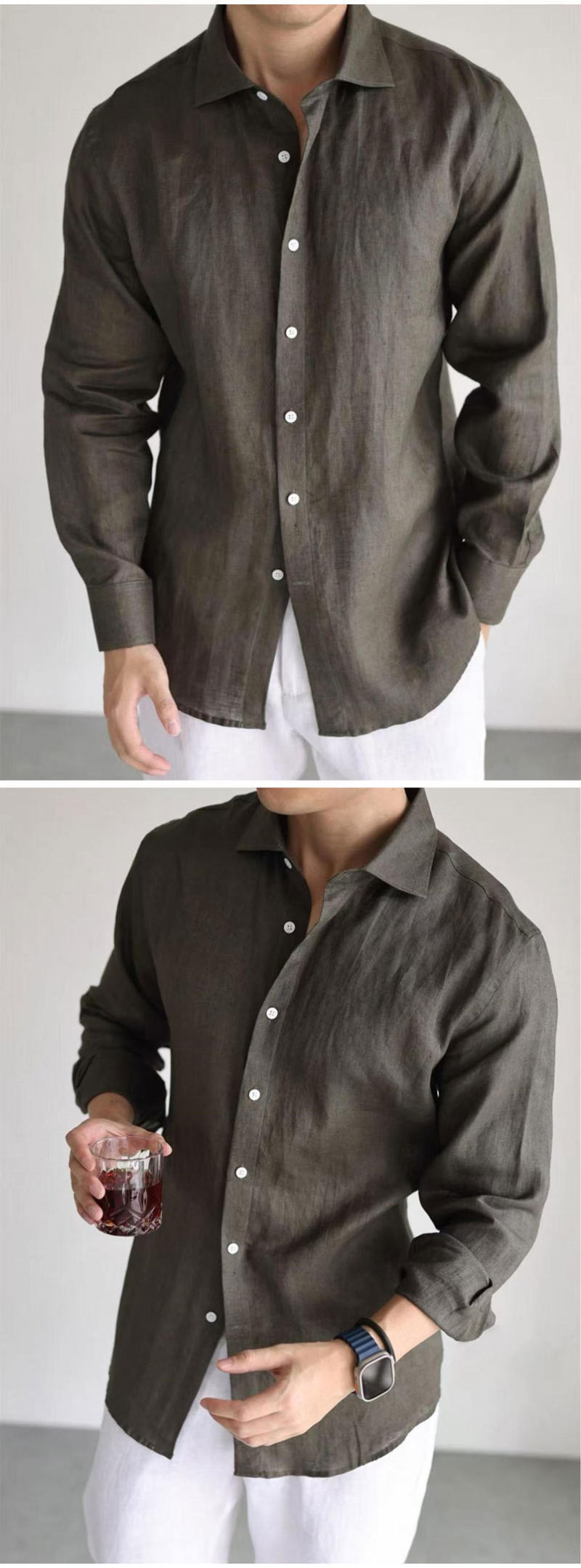 Men's Cotton-Linen Yarn-Dyed Long Sleeve Business Shirt